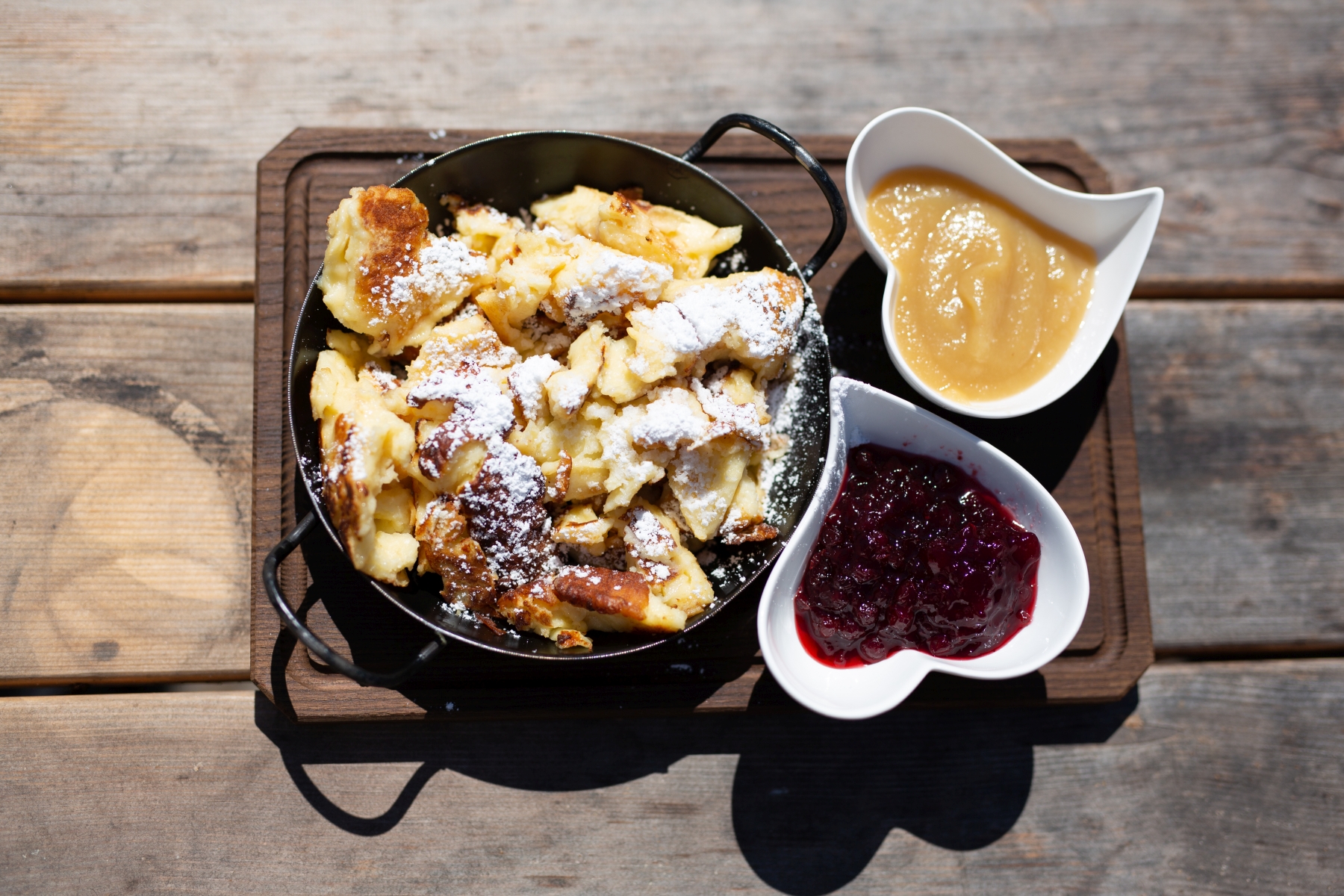 Maslac otopite na laganoj vatri. Ulijte smjesu u tavicu i čekajte da se tijesto zapeče s donje strane. Podijelite kajzeršmarn na manje dijelove kako biste ih lakše okretali.