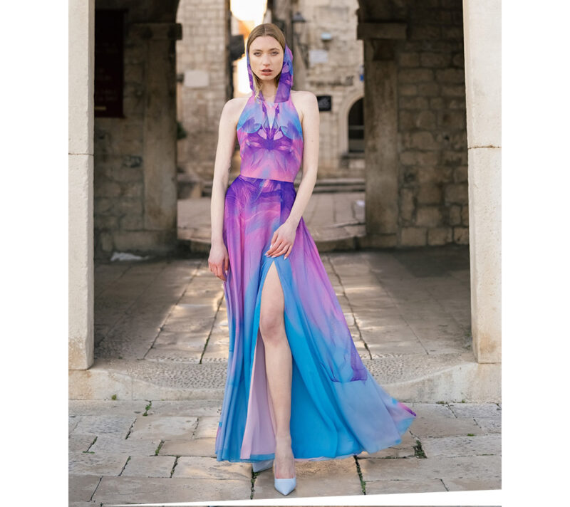 Belma Tvico je strastvena modna istraživačica, stručnjakinja za sve oblike mode i, što je još važnije, radoznala je i otvorena za svijet izvan mode. Novu kolekciju oslobodila je tame zimskih nijansi i pustila svjetlost u vrijeme koje je pred nama. „Return to Sunset“ je zaista magična serija lepršavih haljina, kreiranih na način da oponašaju kretanje mora, vjetra, te svjetlosti. Naizgled jednostavne kreacije su zadivljujuće u svojoj raznolikosti i dolaze u šarenoj paleti nježno ruzičaste, koraljne, plave, iris, te tirkizne boje. Oličenje elegancije dolazi u izmaglici nijanse lavande, te dodiru crne boje. Kao što smo i navikli, Belma Tvico nam predstavlja luksuznu, ali praktičnu kolekciju: komade dostojne sna ljetne noći.