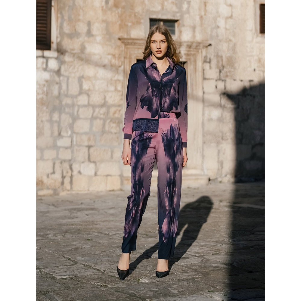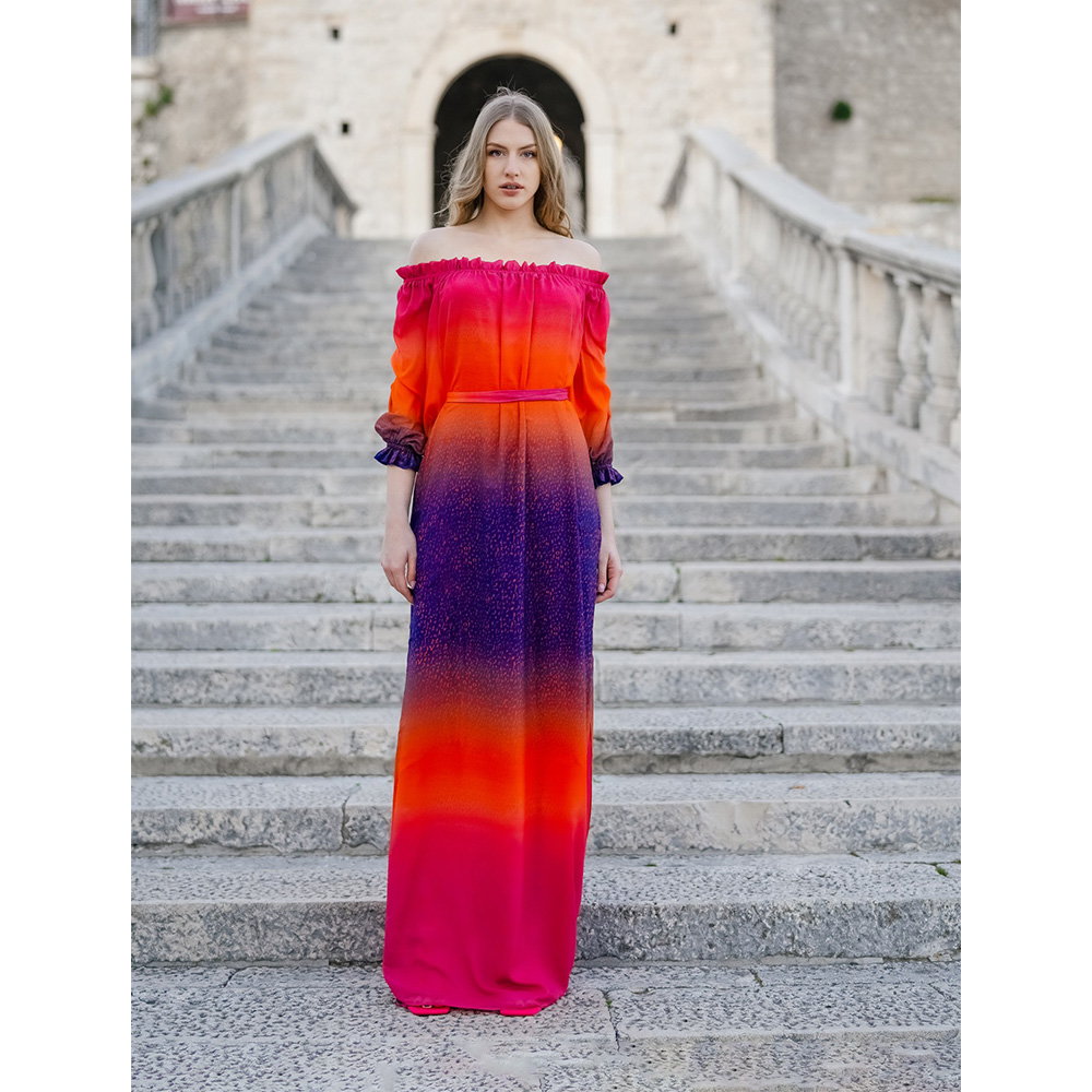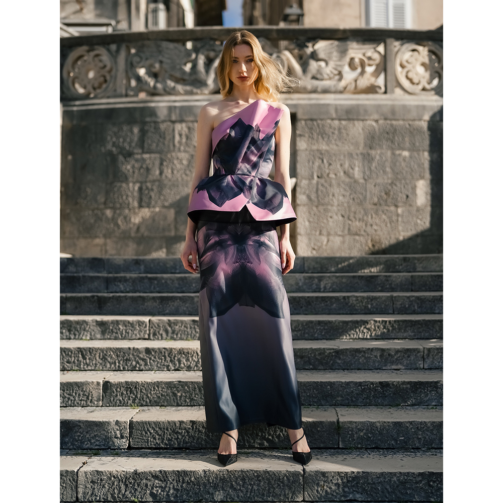 Ovog puta, Belma Tvico je skicirala zalazak sunca u njegovim različitim fazama. Prikazani podjednako u živahnim i mirnim nijansama, sa blistavim odsjajem u vodi koja naglašava njihovu privlačnost i intenzitet, zalasci sunca u kreacijama Belme Tvico nisu tek puka interpretacija prirodnog fenomena na nježnoj tkanini. Ona ne ocrtava samo grimizne oblake, već i nebo iza njih, okean podno njih, te duboke misterije mora koja je mjesecima obilazila u potrazi za inspiracijom. Njezina stalna zaokupljenost florom i faunom dostigla je vrhunac ovom kolekcijom dok ulazi u najproduktivniji i najzreliji period svoje dizajnerske karijere. „Return to Sunset“ se uzdiže iznad pukog poimanja mode.