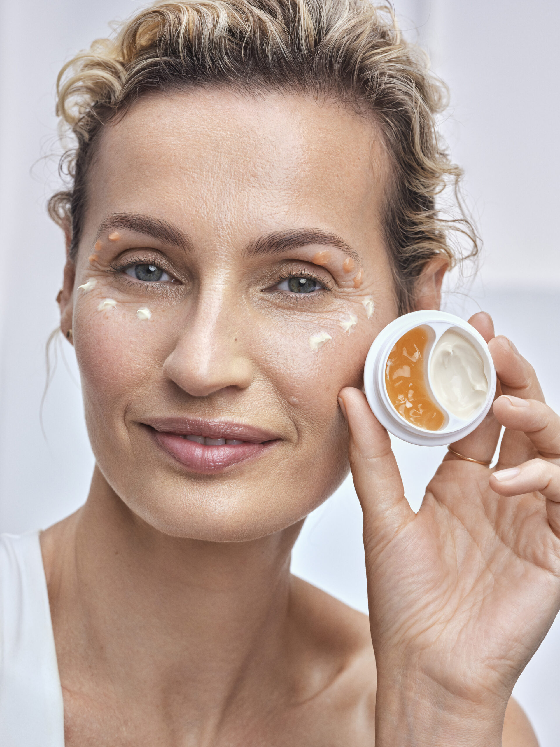 Dual Eye Lifting tretman za zatezanje kapaka, sačinjen je od kreme bez ulja i laganog gela, koji u sebi kriju aminokiseline i kofein. Ova dvofazna formula pospješuje hidrataciju i koži oko očiju daje zategnutiji i čvršći izgled.