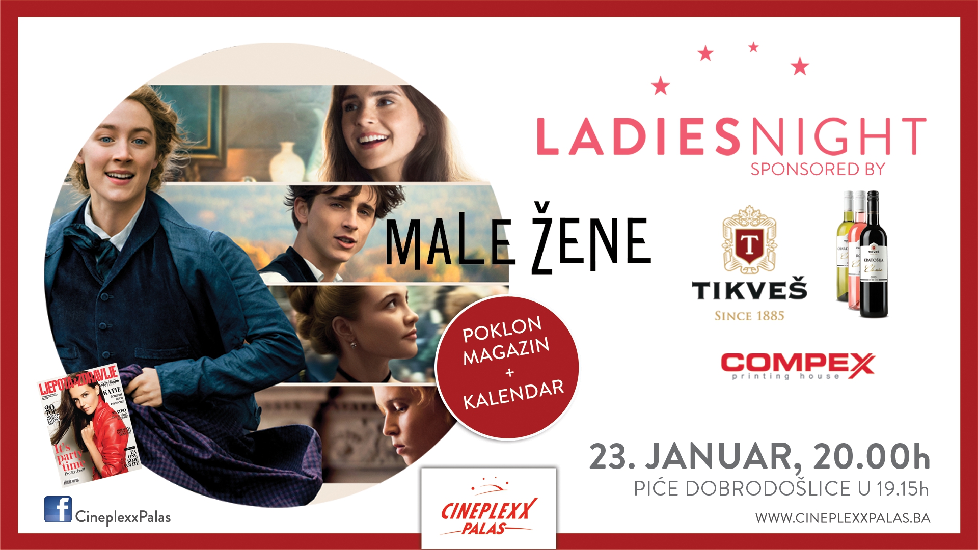 Prvi ovogodišnji Ladies Night biće održan sutra (četvrtak) 23. januara uz “Male žene” – film nominovan za čak šest Oskara uključujući i onaj u kategoriji “najbolji film”.