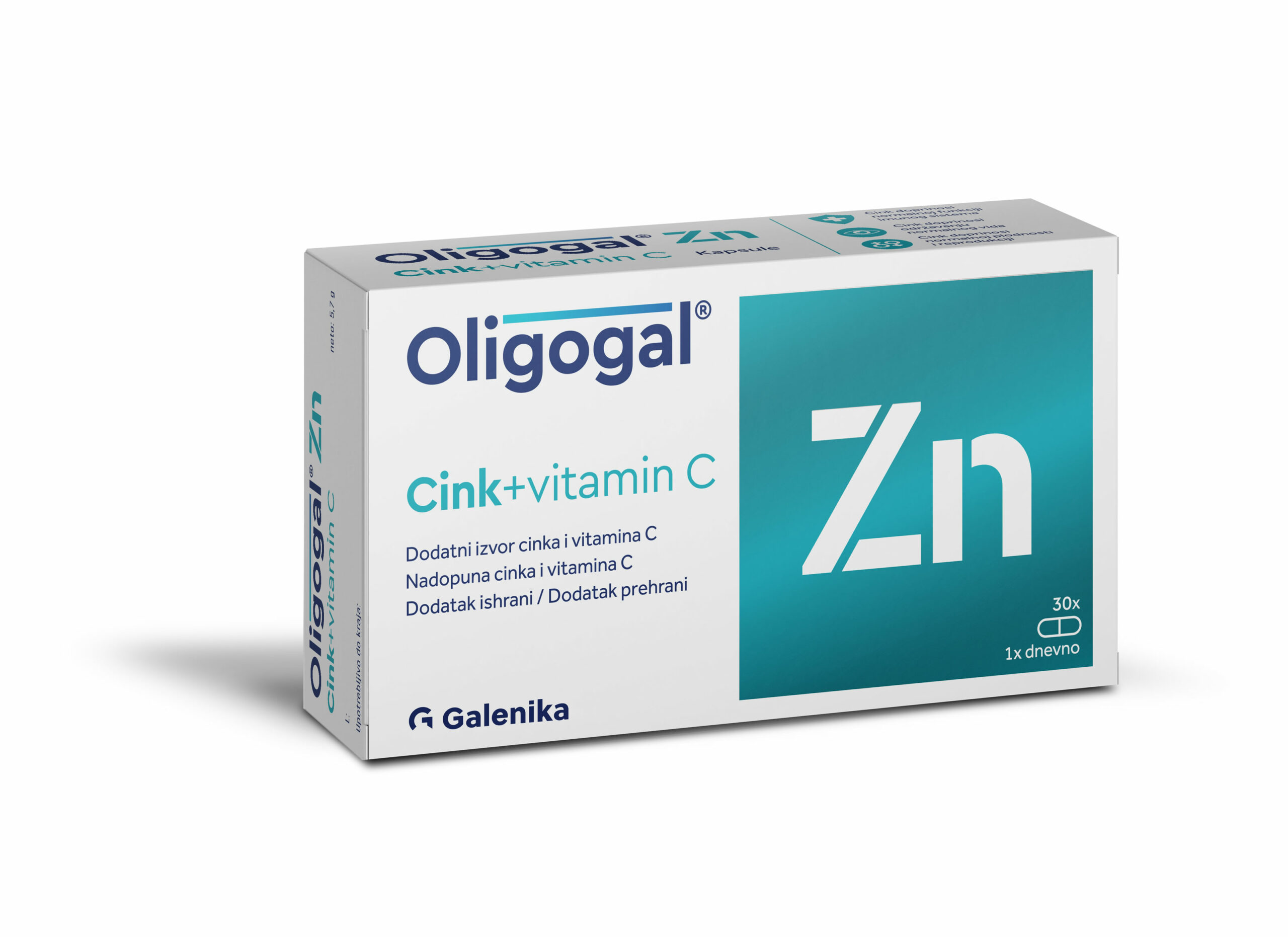 Osim prirodnih načina za jačanje imunološkog sistema, uvijek dobro dođu i dodaci ishrani u vidu suplementa kakav je recimo Oligogal® Zn. Mineral cink (Zn) se prirodno nalazi u tijelu odraslog čoveka i to u količini od oko 2 g i ovaj mineral je neophodan za pravilno funkcionisanje organizma. Cink je neophodan za ćelijsku diobu, pravilnu funkciju ćelijskih membrana, rast tkiva i sintezu genetskog materijala. Cink se smatra stimulatorom imuniteta. Učestvuje u stvaranju vezivnog tkiva, noktiju, kose i kože i važan je za pravilan rad znojnih žlijezda.